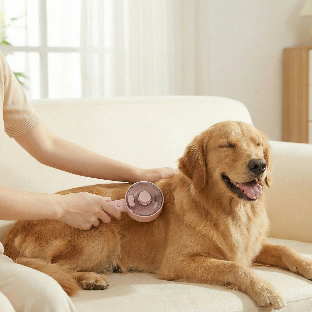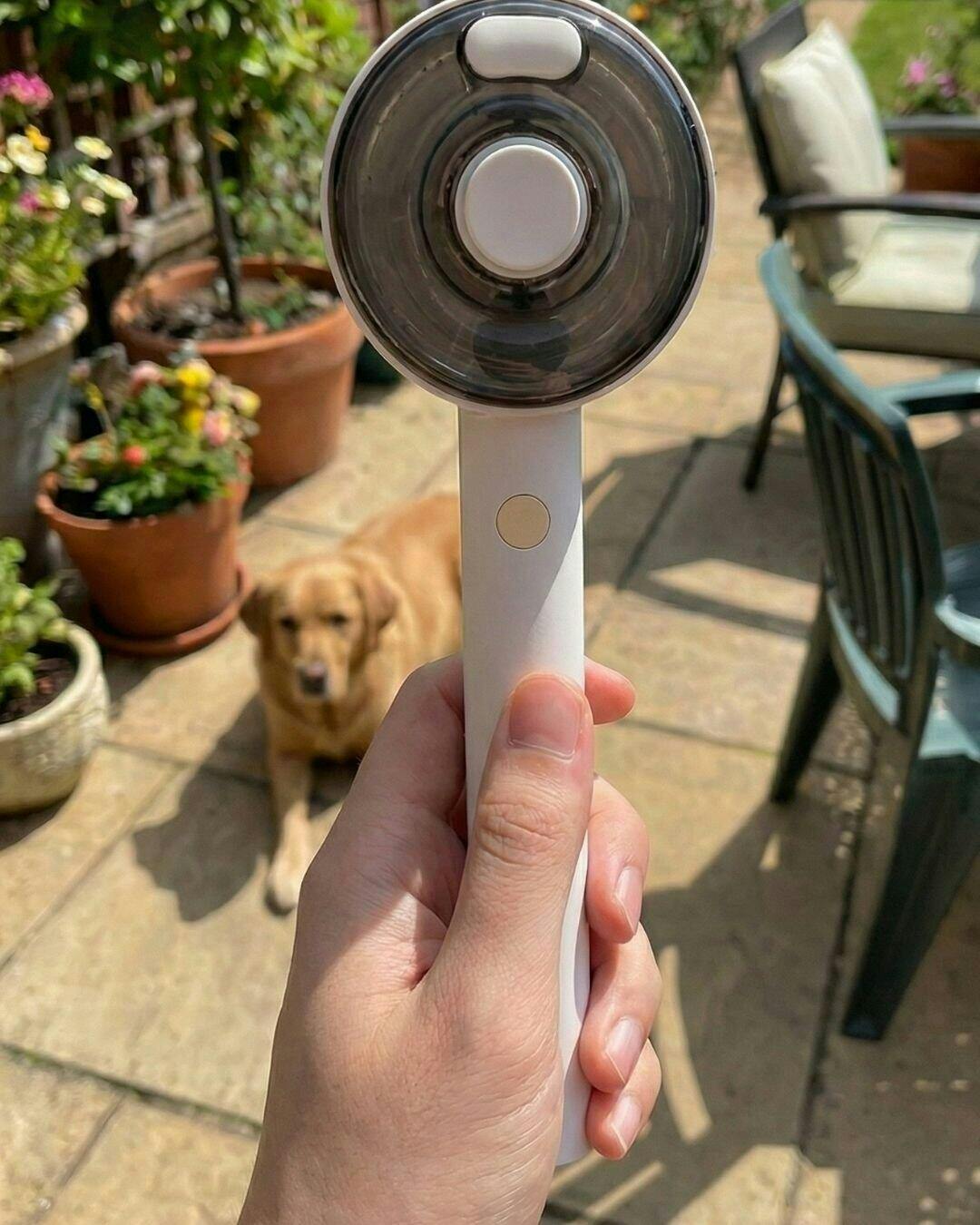 The built-in UVC light reduces bacteria on the brush and your pet’s coat. Simply hold the button to activate the light while grooming.