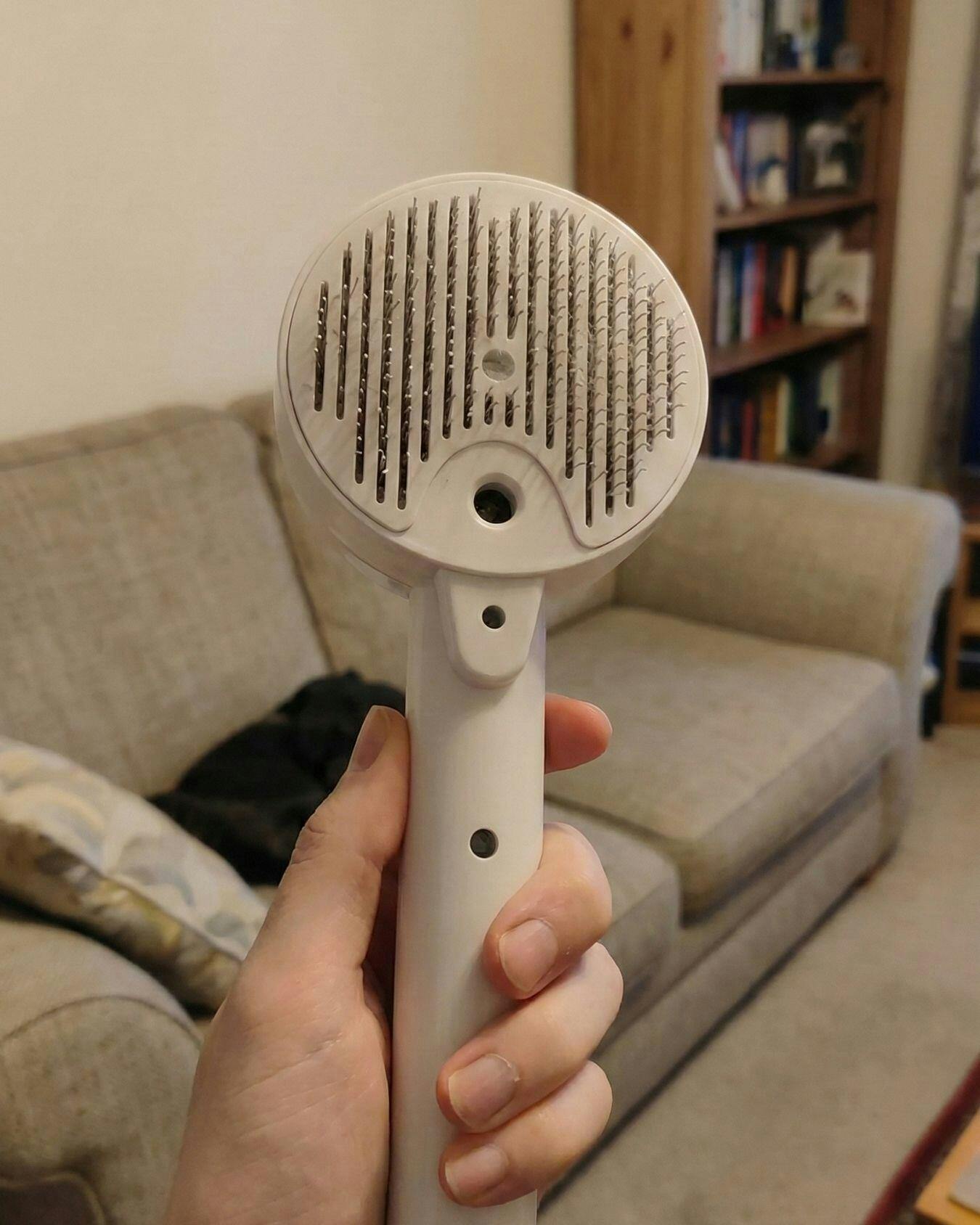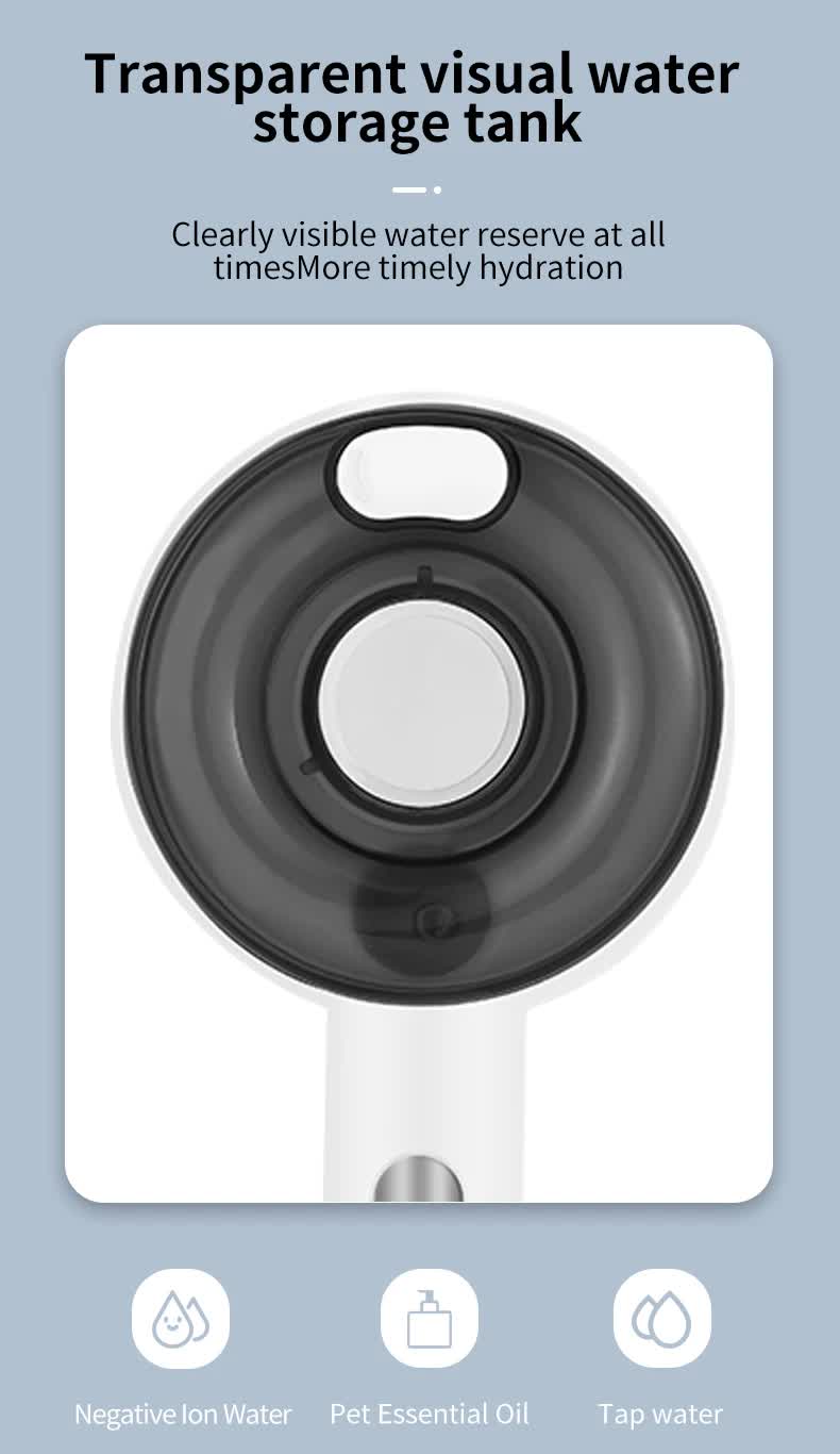 The mist helps reduce static, smooth fur for easier brushing, and can lightly freshen or deodorize the coat. It has two spray modes (light and heavy) and a refillable 30ml water tank.