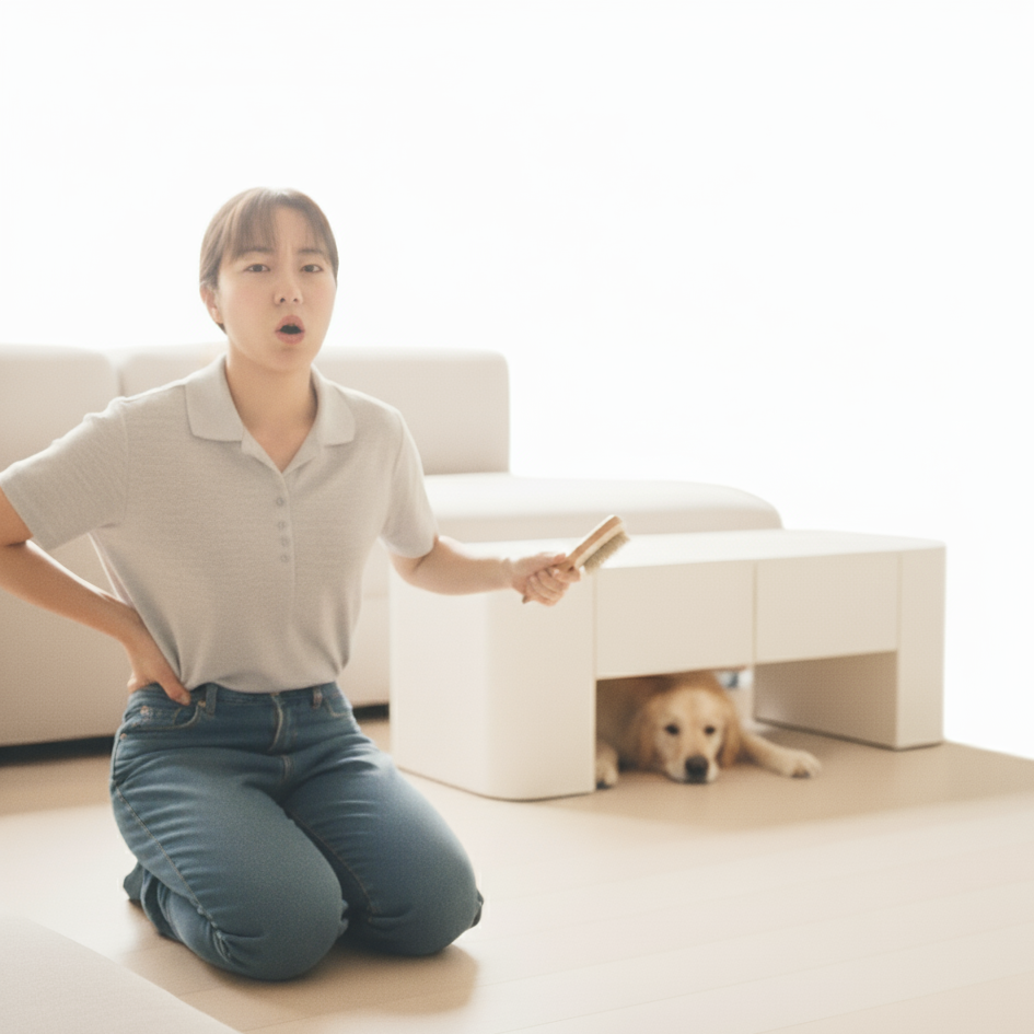 Press the one-click button on the back of the brush. The collected fur will be released in one piece for easy clean-up.